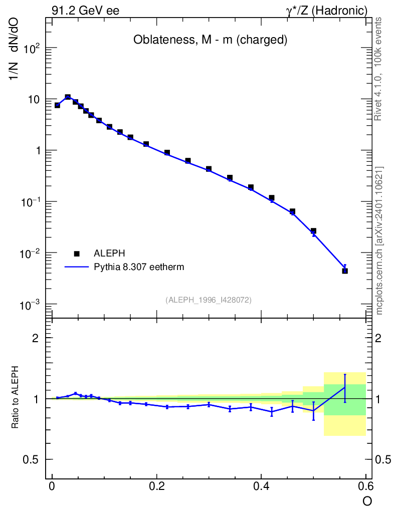 Lines: data, pythia8 8.307 eetherm |