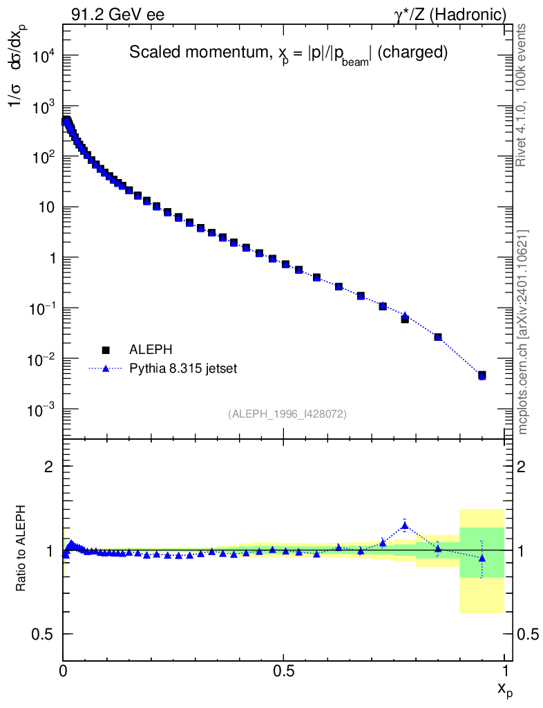 Lines: data, pythia8 8.315 jetset |