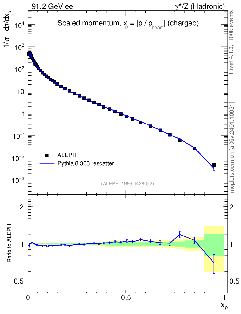 Lines: data, pythia8 8.308 rescatter |