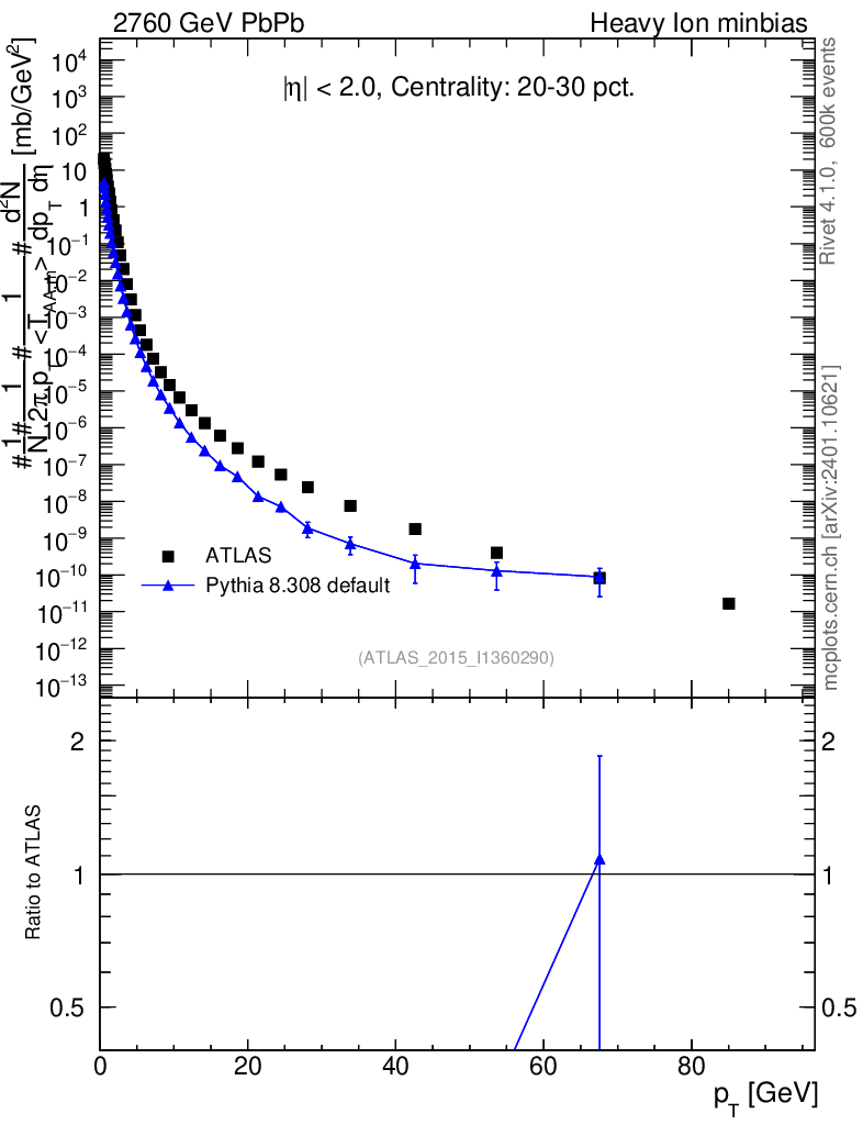 Lines: data, pythia8 8.308 default |