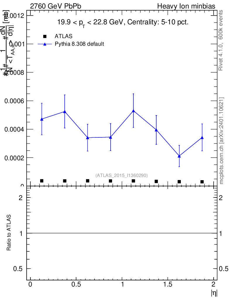 Lines: data, pythia8 8.308 default |