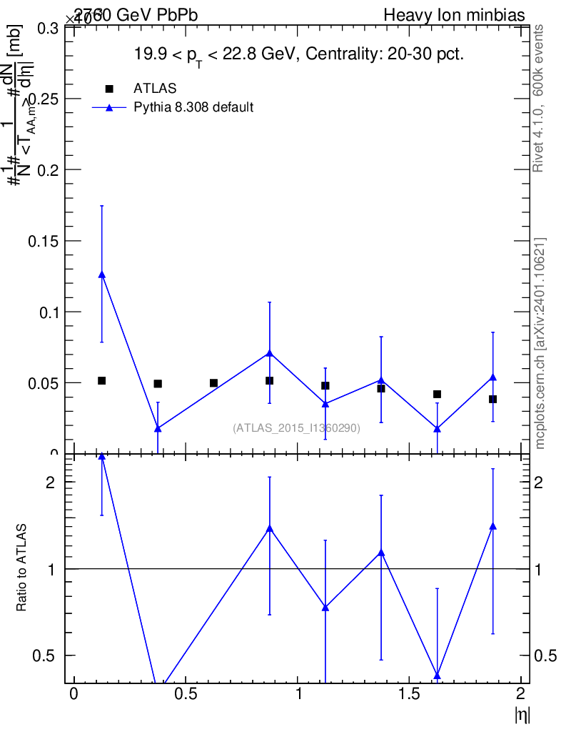 Lines: data, pythia8 8.308 default |
