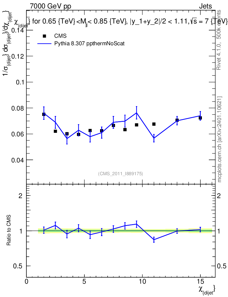Lines: data, pythia8 8.307 ppthermNoScat |