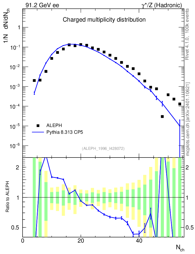 Plot of nch in 91.2 GeV ee collisions