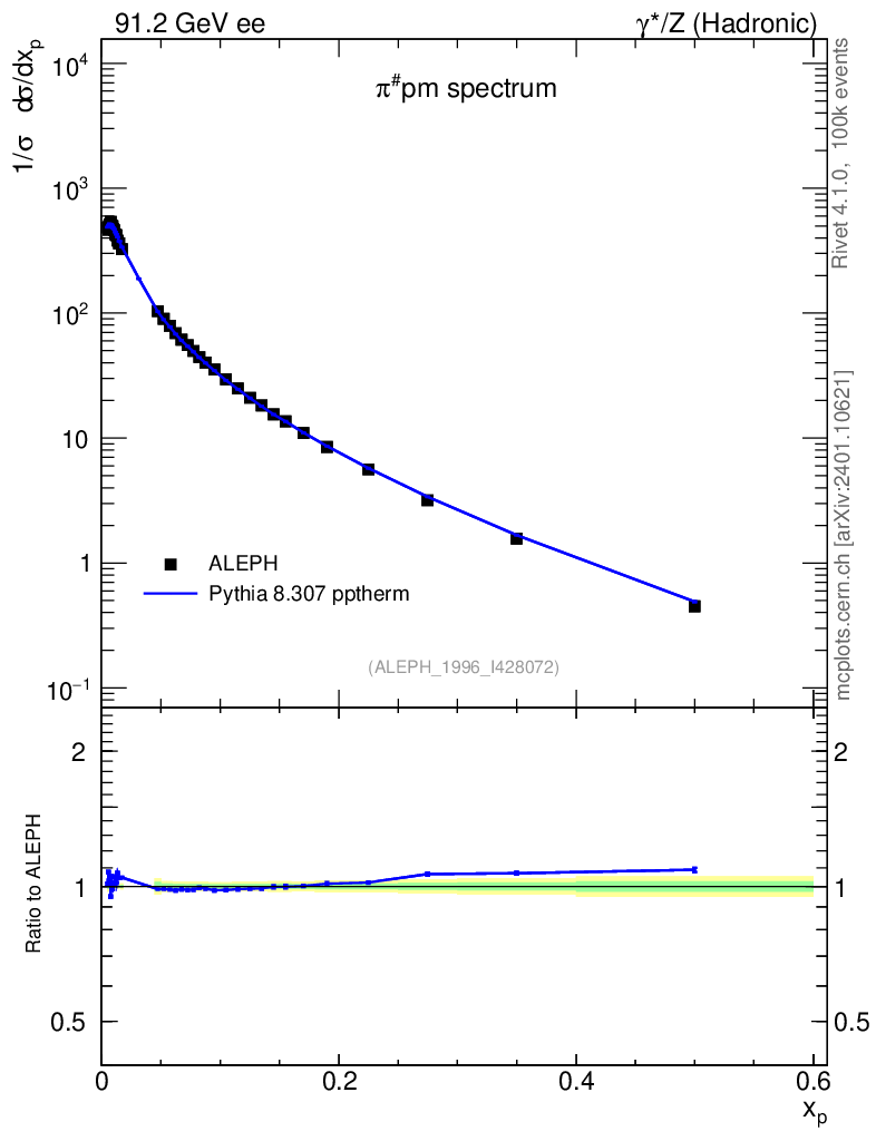 Lines: data, pythia8 8.307 pptherm |