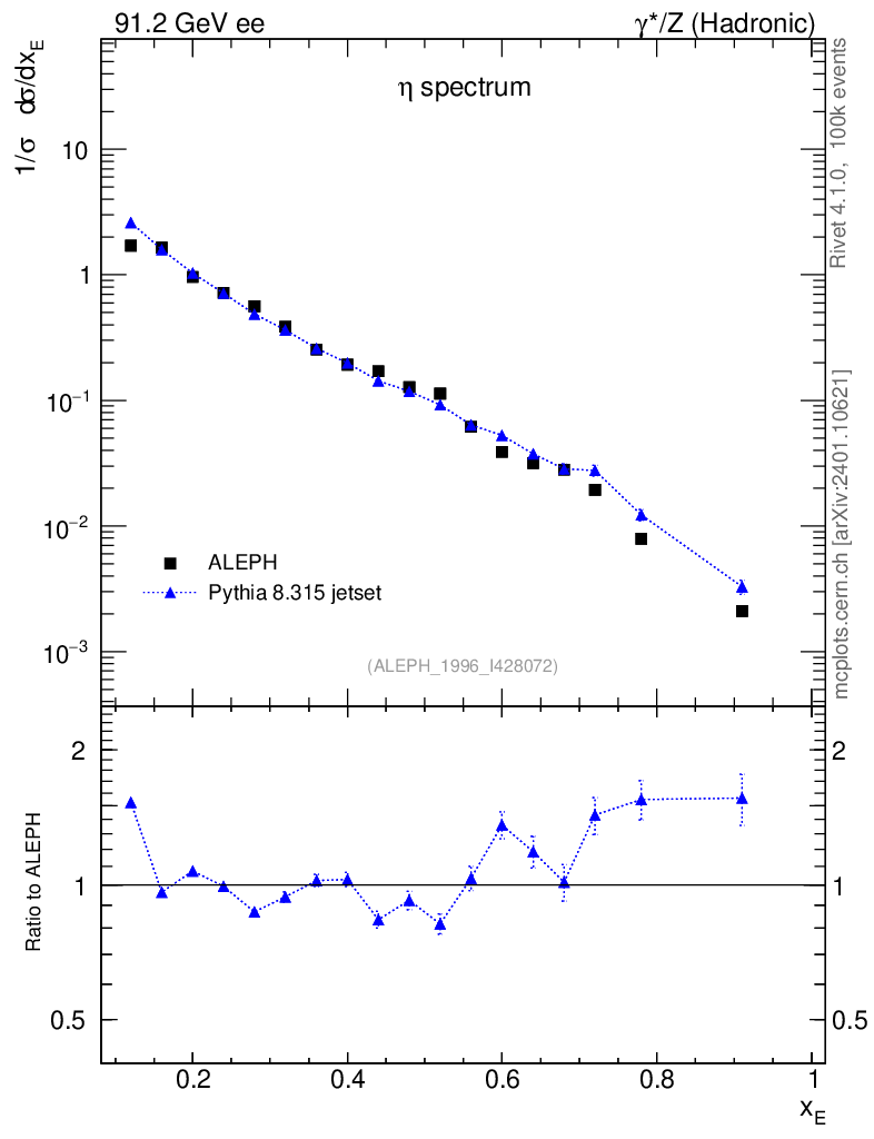 Lines: data, pythia8 8.315 jetset |