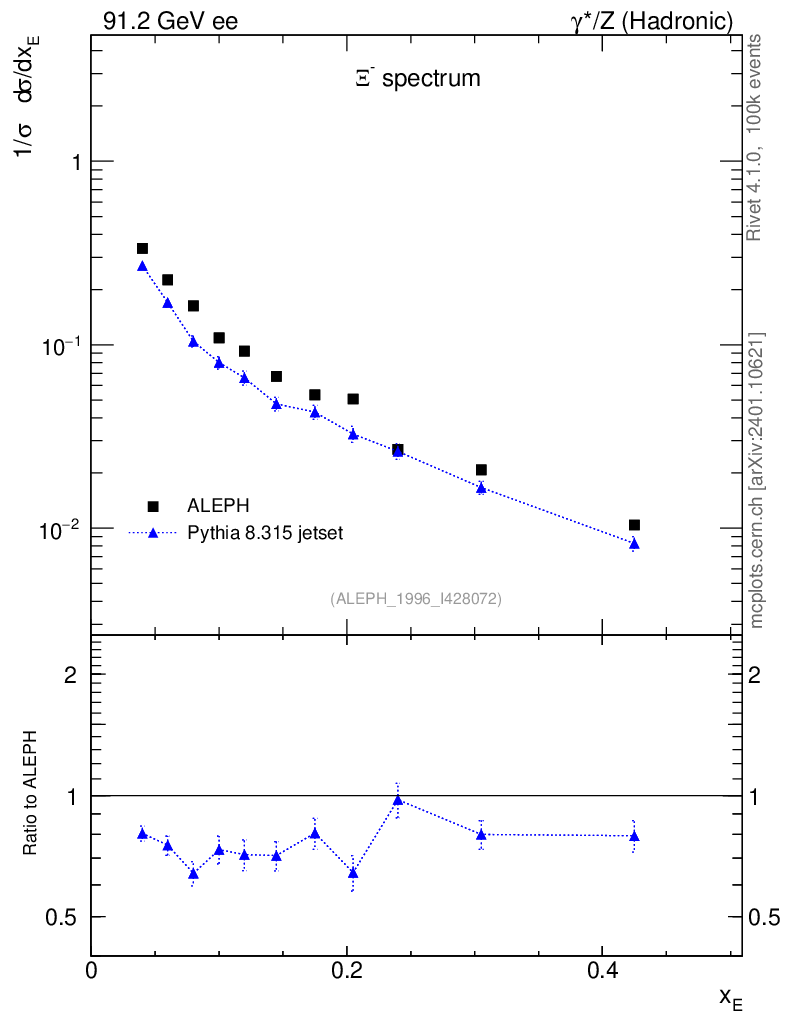 Lines: data, pythia8 8.315 jetset |