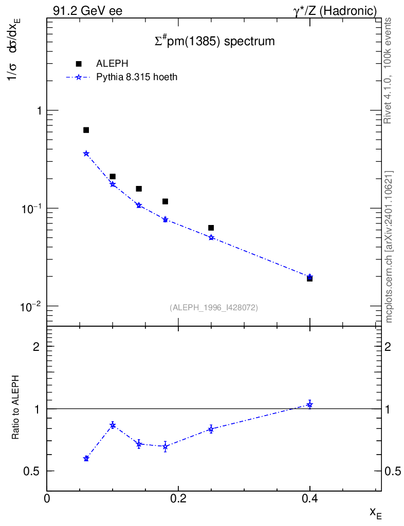 Lines: data, pythia8 8.315 hoeth |
