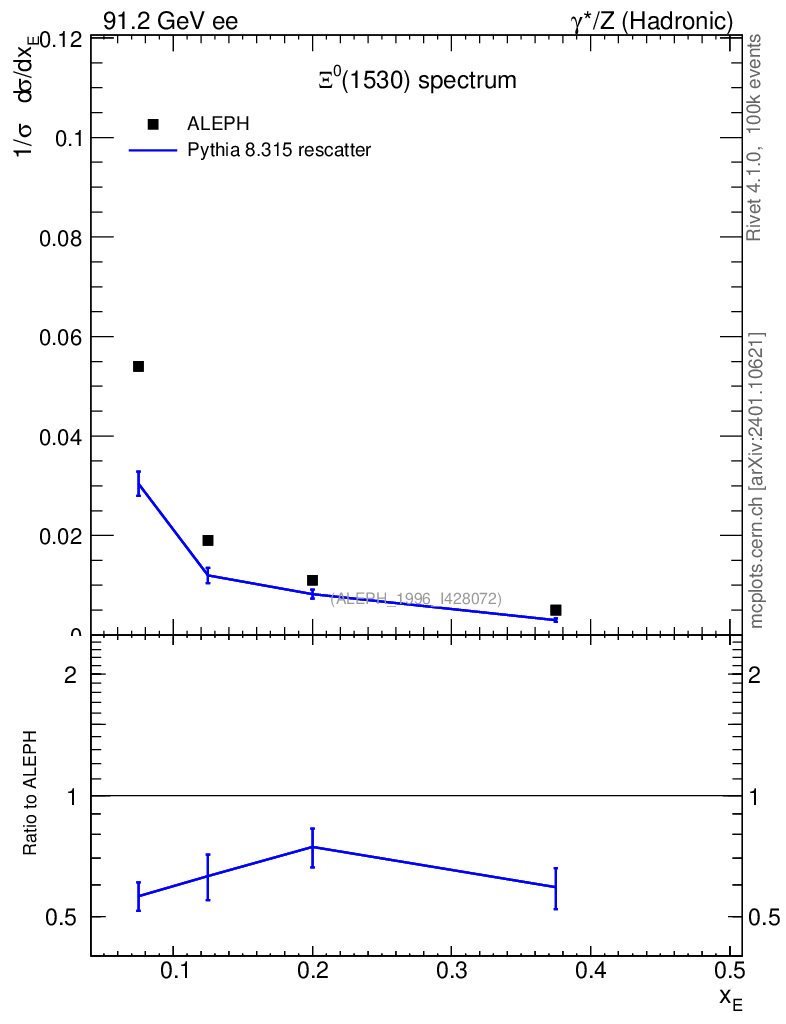 Lines: data, pythia8 8.315 rescatter |