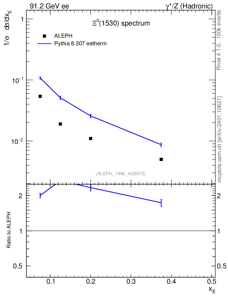 Lines: data, pythia8 8.307 eetherm |