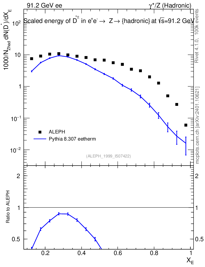 Lines: data, pythia8 8.307 eetherm |