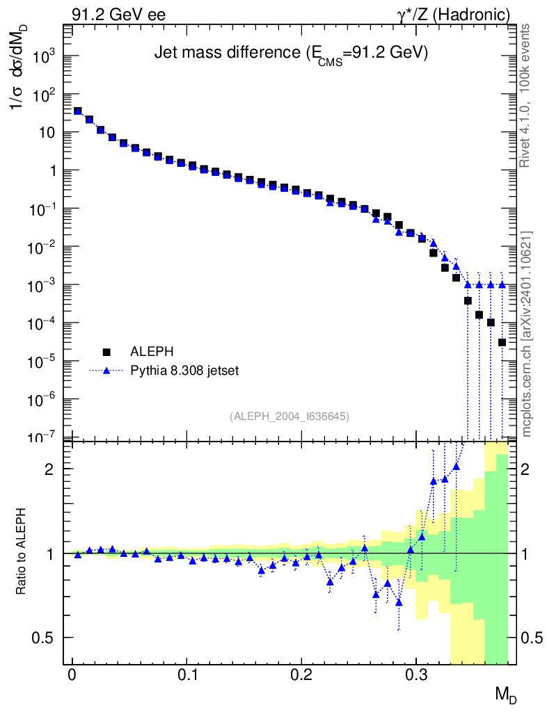 Lines: data, pythia8 8.308 jetset |