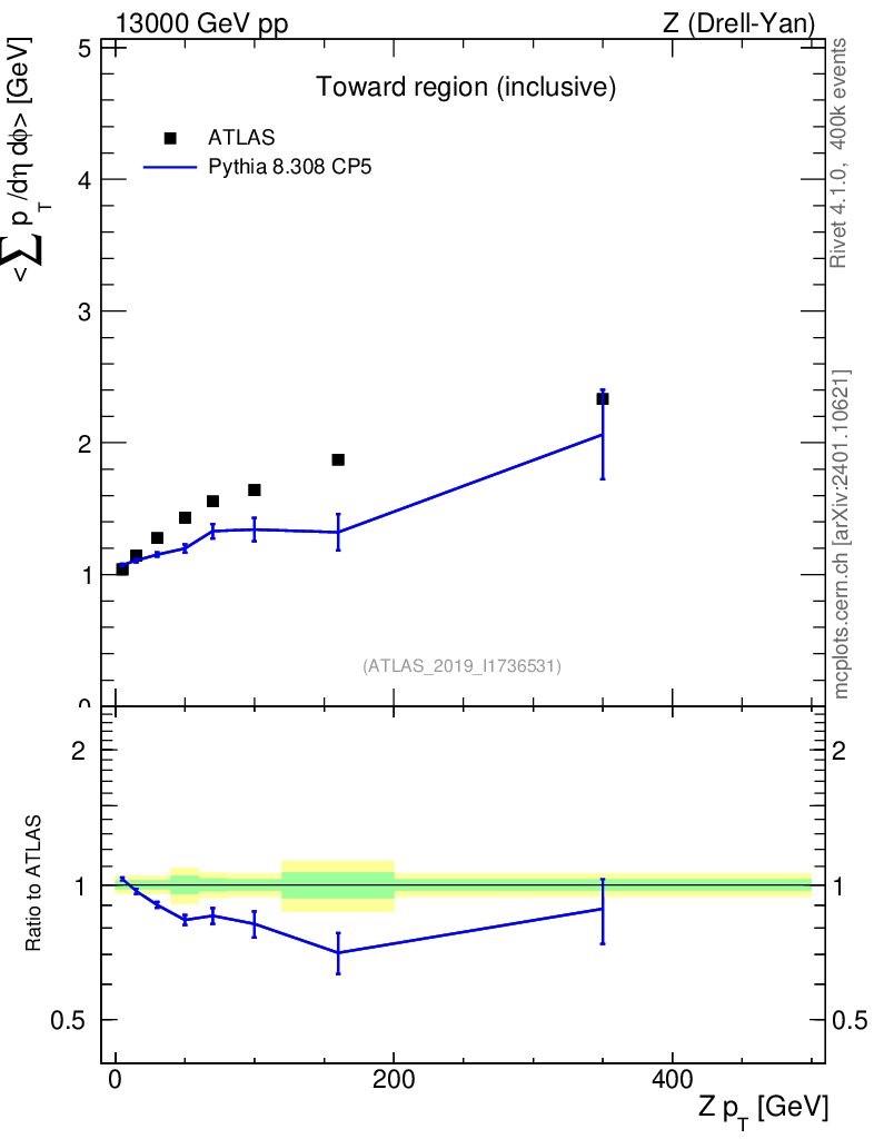 Lines: data, pythia8 8.308 CP5 |