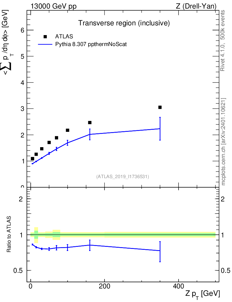 Lines: data, pythia8 8.307 ppthermNoScat |