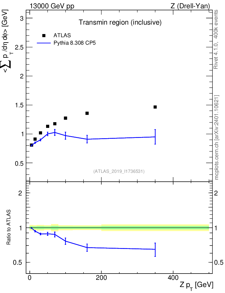 Lines: data, pythia8 8.308 CP5 |