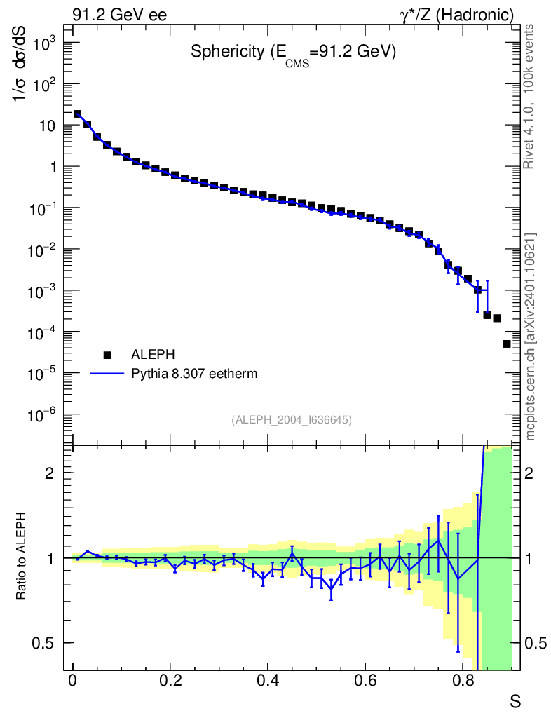 Lines: data, pythia8 8.307 eetherm |