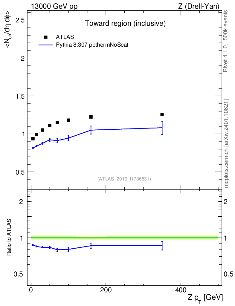 Lines: data, pythia8 8.307 ppthermNoScat |