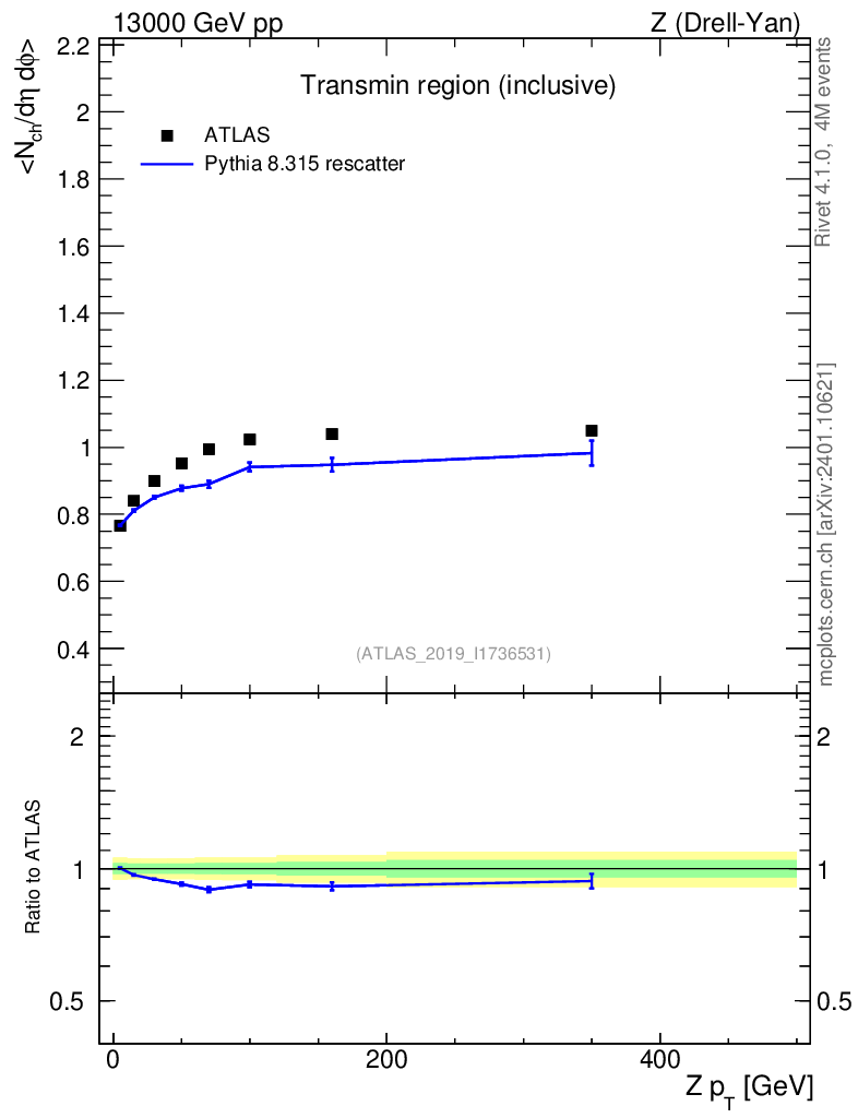 Lines: data, pythia8 8.315 rescatter |