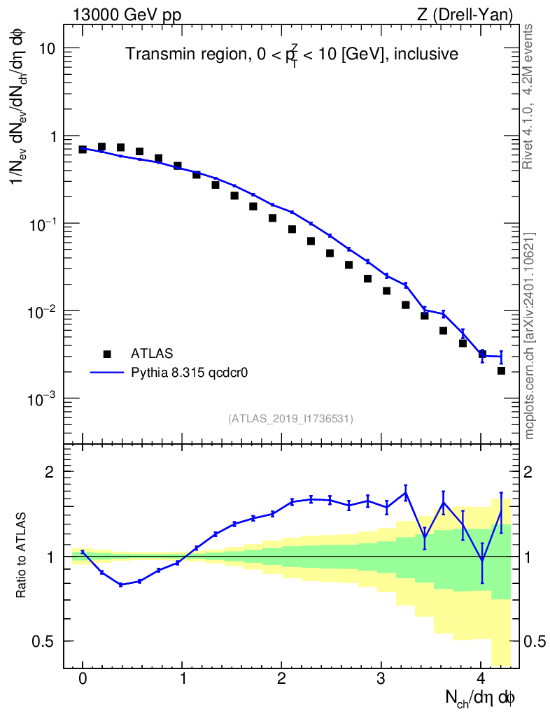 Lines: data, pythia8 8.315 qcdcr0 |