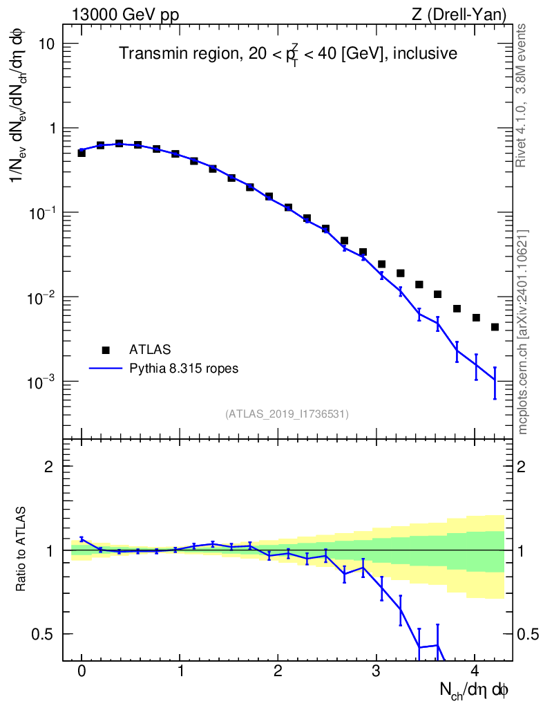 Lines: data, pythia8 8.315 ropes |
