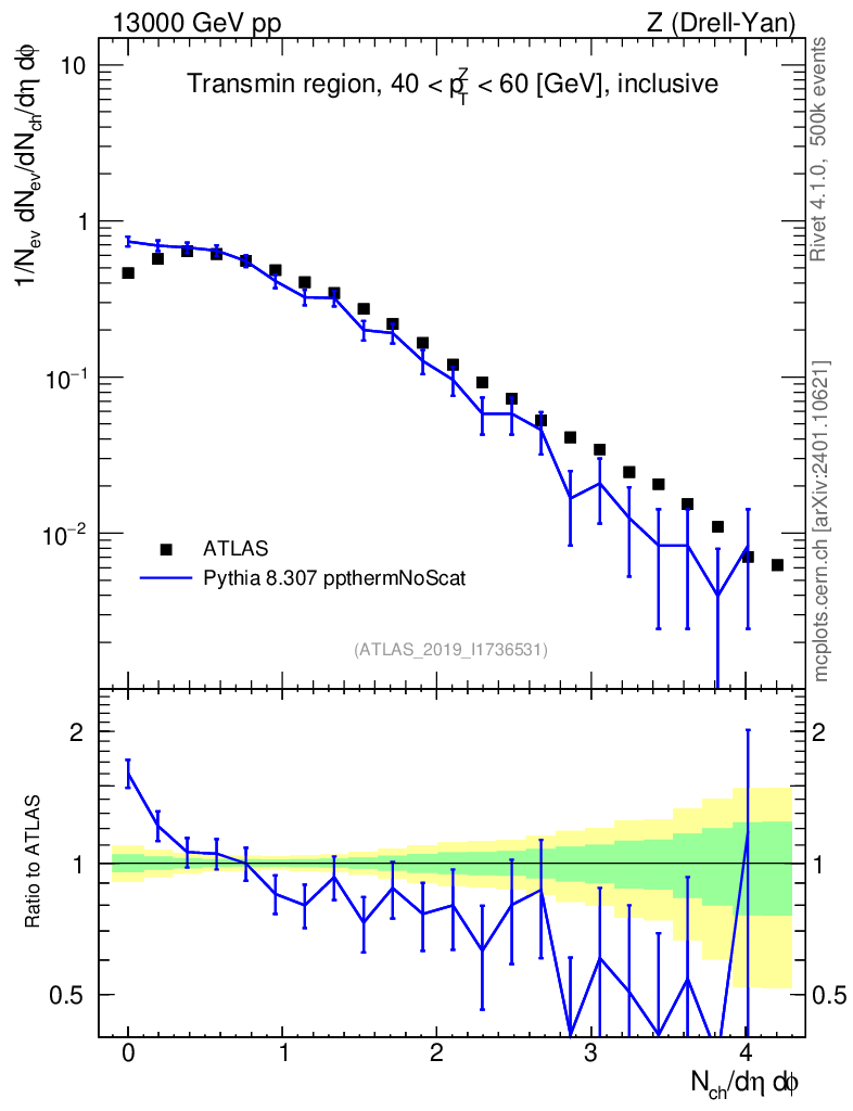 Lines: data, pythia8 8.307 ppthermNoScat |