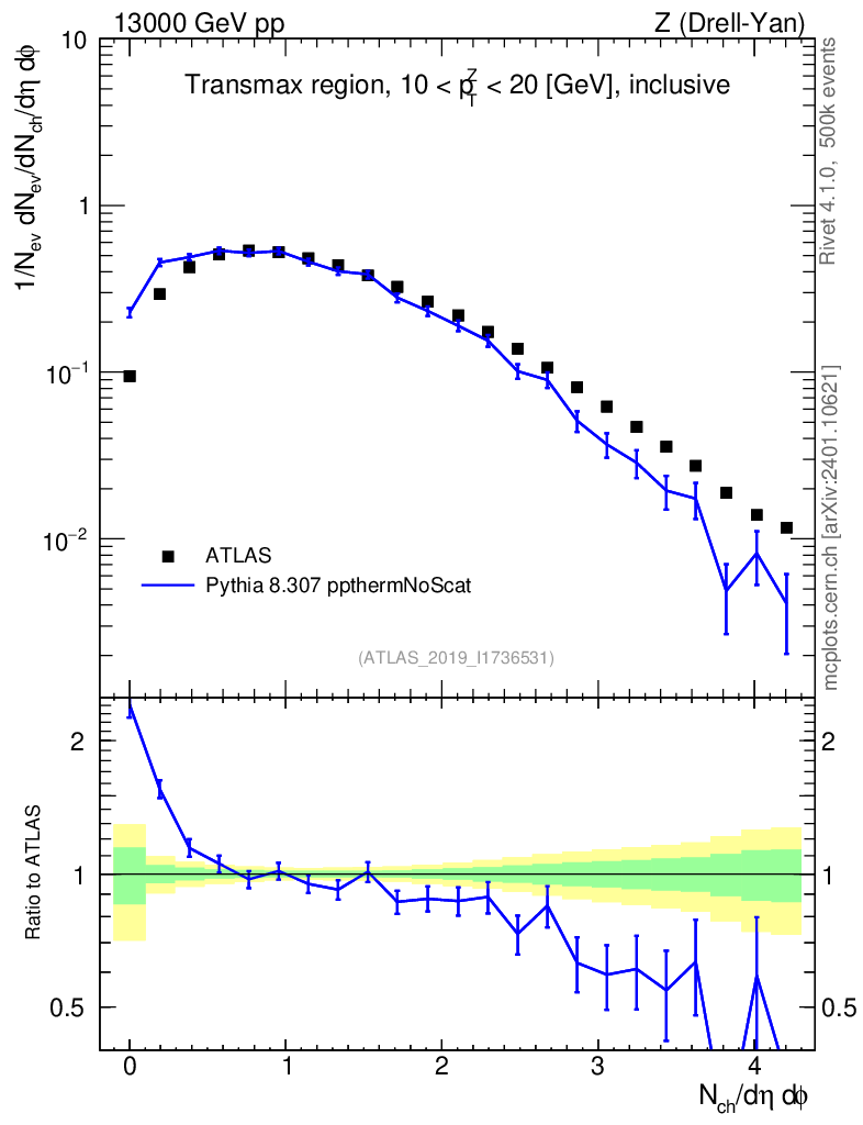 Lines: data, pythia8 8.307 ppthermNoScat |