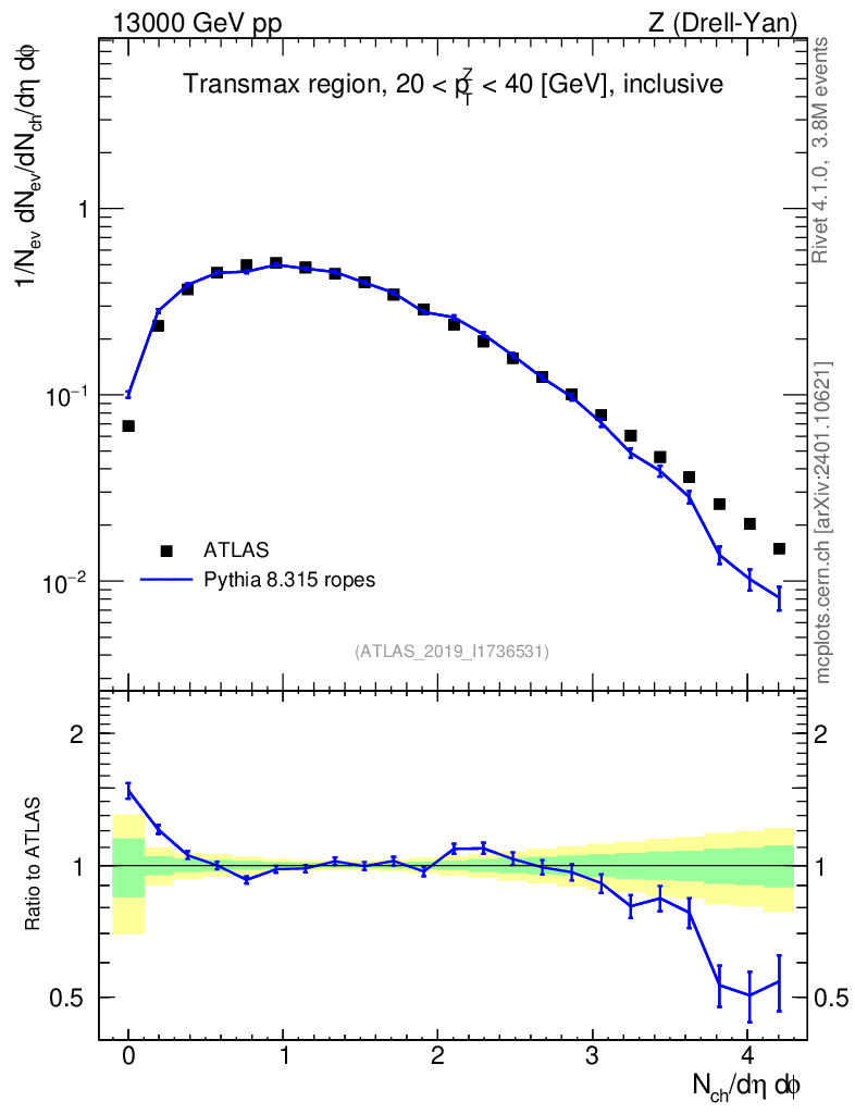 Lines: data, pythia8 8.315 ropes |