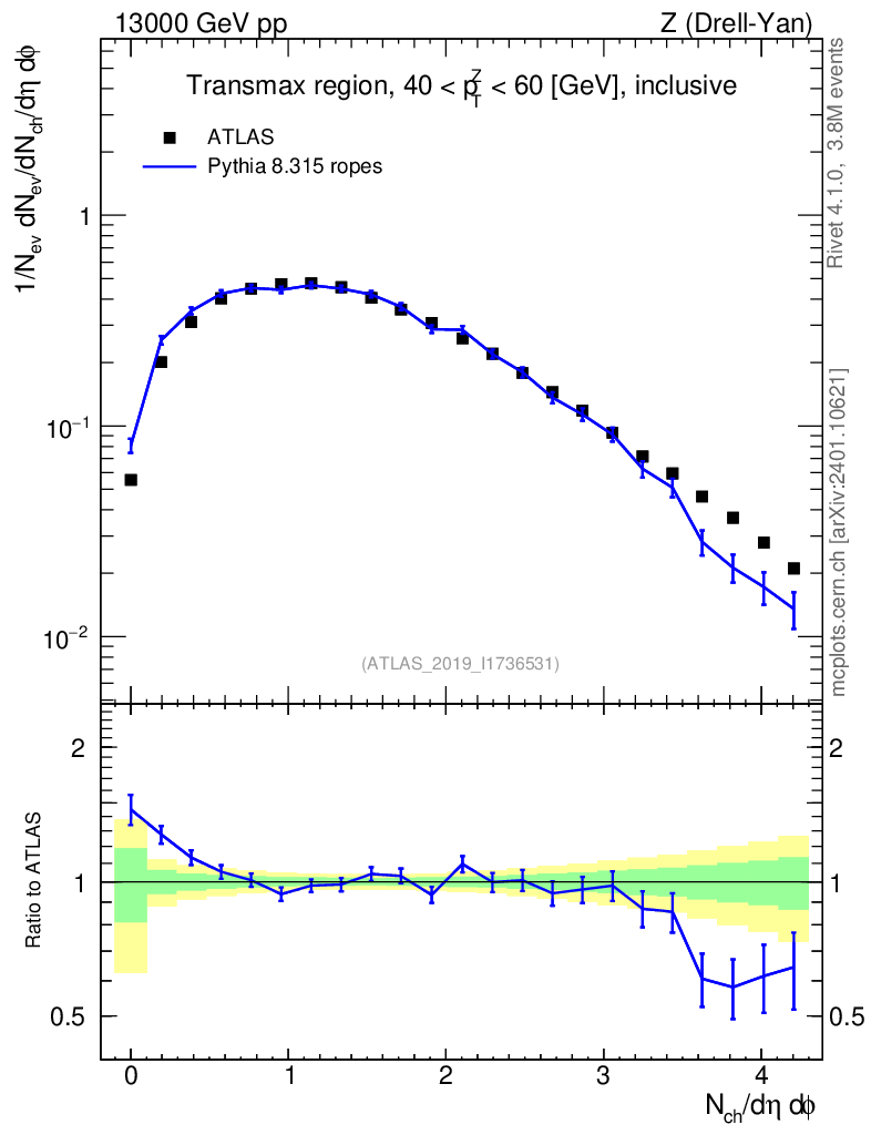 Lines: data, pythia8 8.315 ropes |