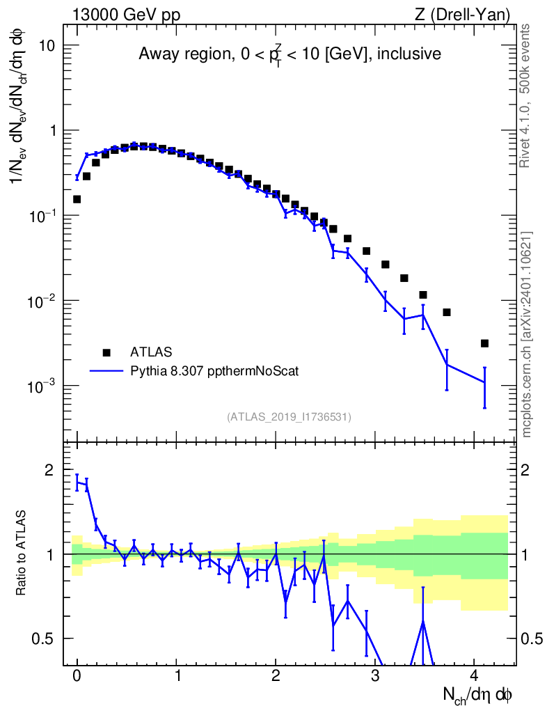 Lines: data, pythia8 8.307 ppthermNoScat |