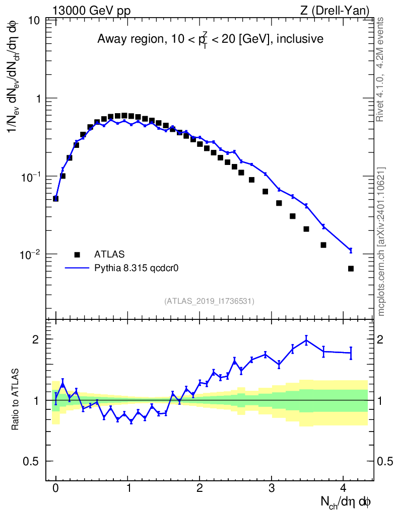 Lines: data, pythia8 8.315 qcdcr0 |