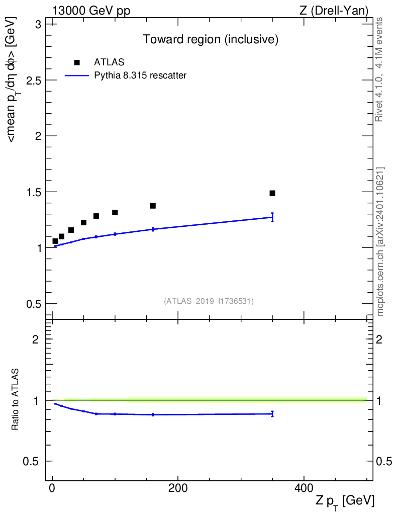 Lines: data, pythia8 8.315 rescatter |