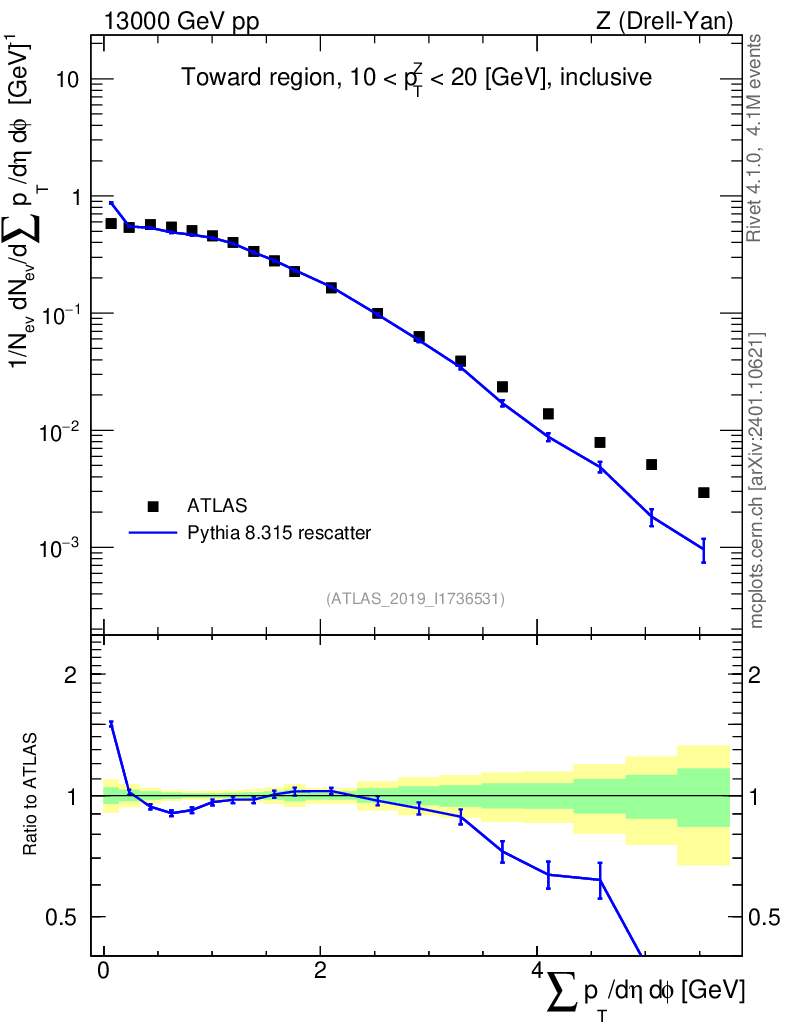 Lines: data, pythia8 8.315 rescatter |