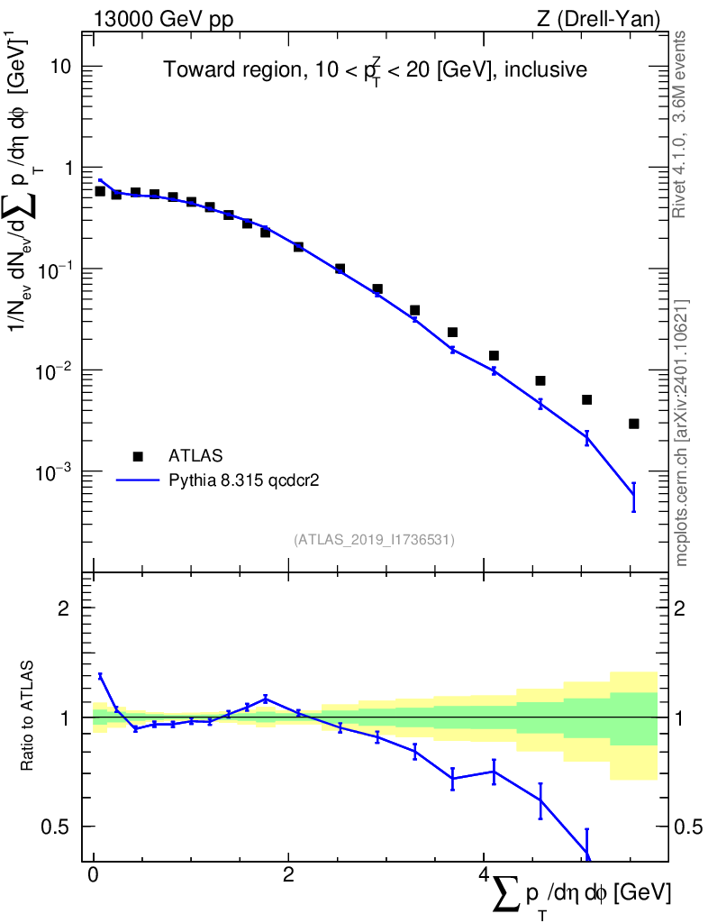 Lines: data, pythia8 8.315 qcdcr2 |