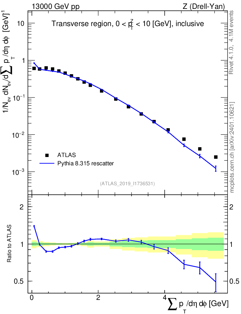 Lines: data, pythia8 8.315 rescatter |