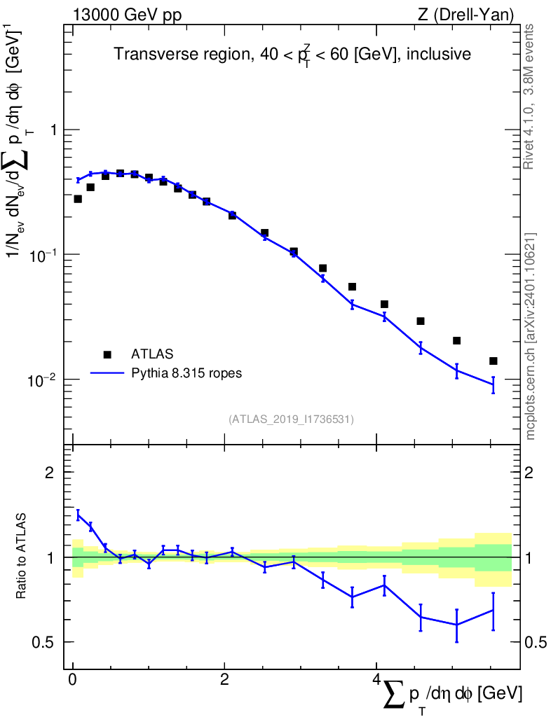 Lines: data, pythia8 8.315 ropes |