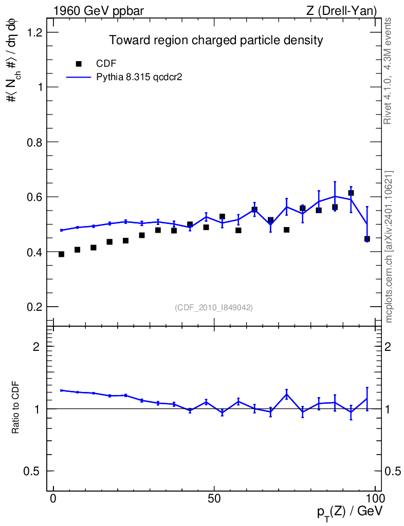 Lines: data, pythia8 8.315 qcdcr2 |
