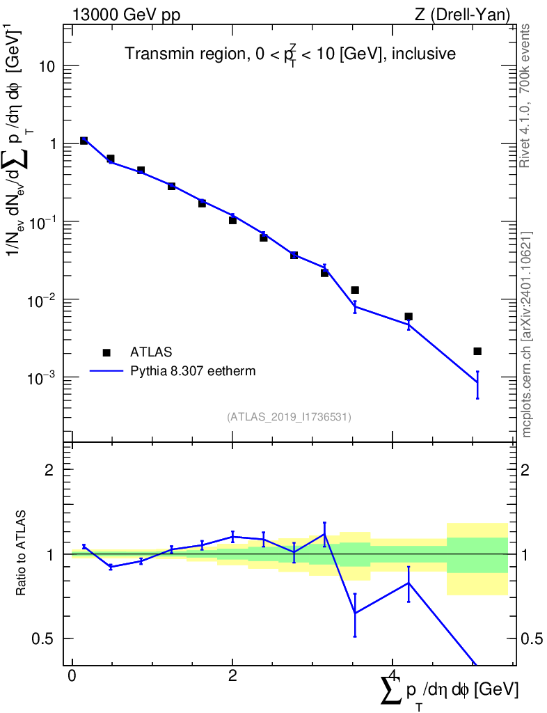 Lines: data, pythia8 8.307 eetherm |