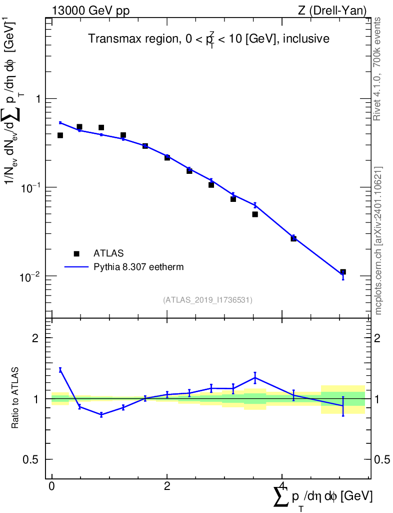 Lines: data, pythia8 8.307 eetherm |