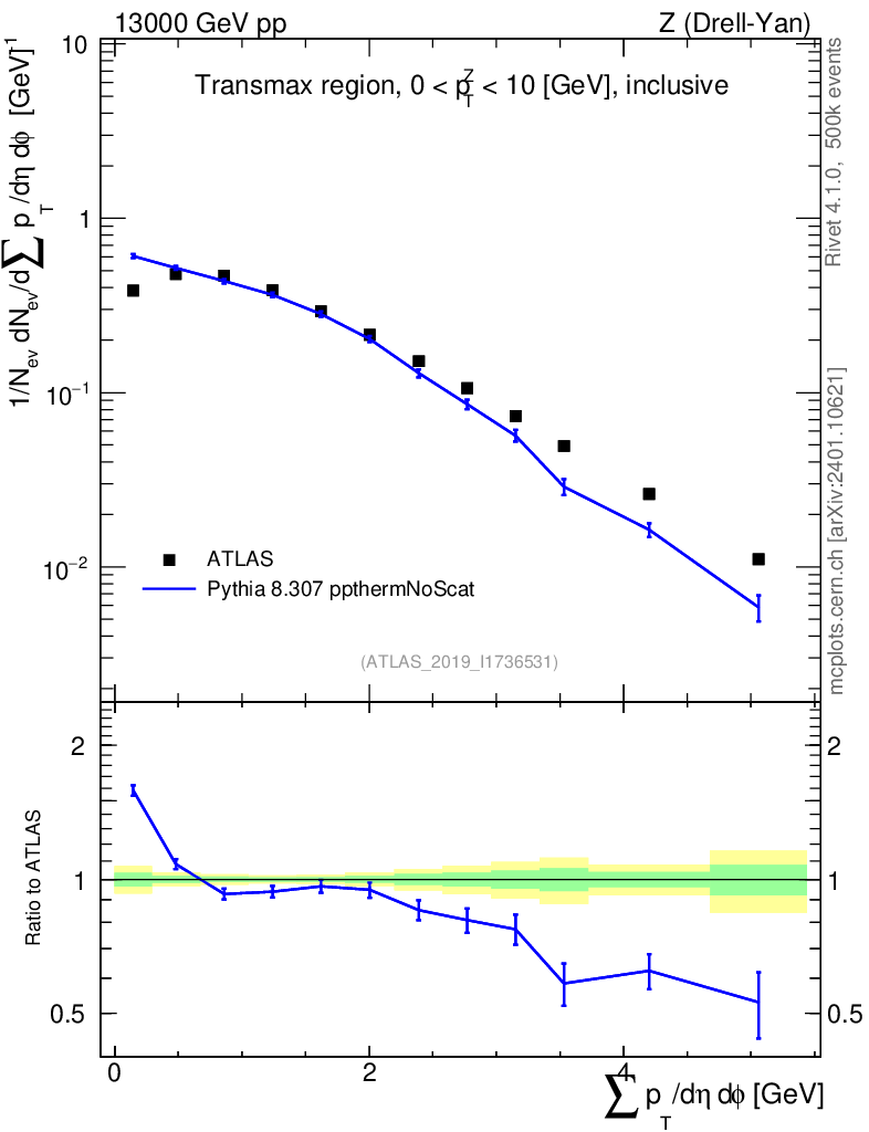 Lines: data, pythia8 8.307 ppthermNoScat |