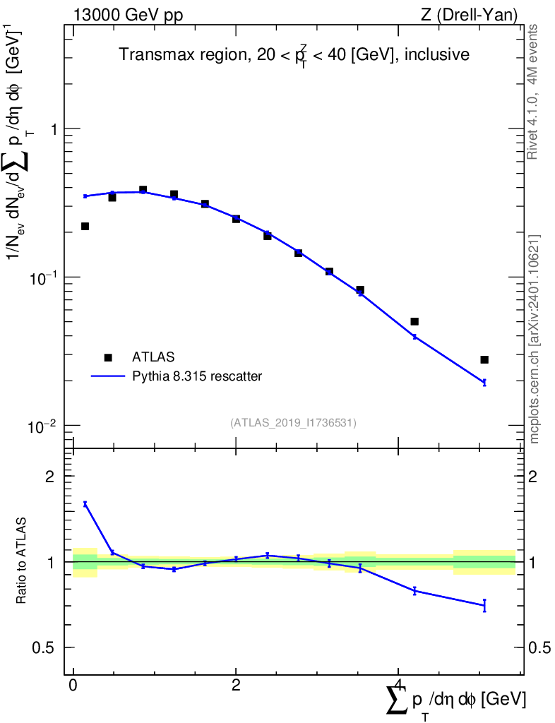 Lines: data, pythia8 8.315 rescatter |