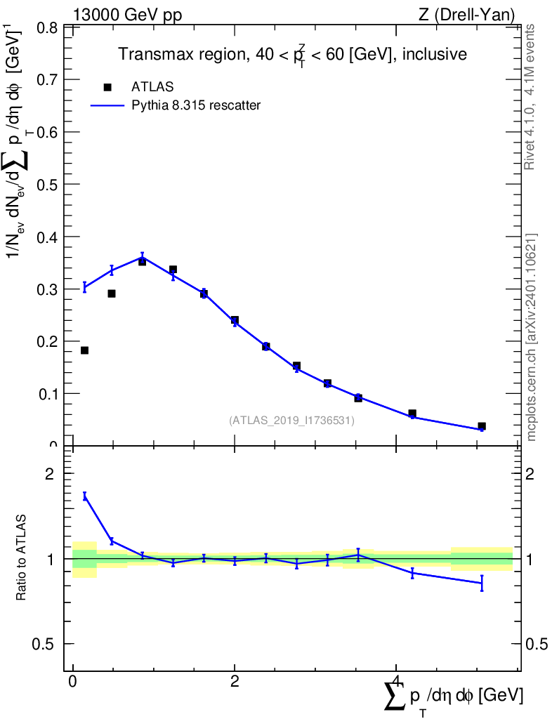 Lines: data, pythia8 8.315 rescatter |