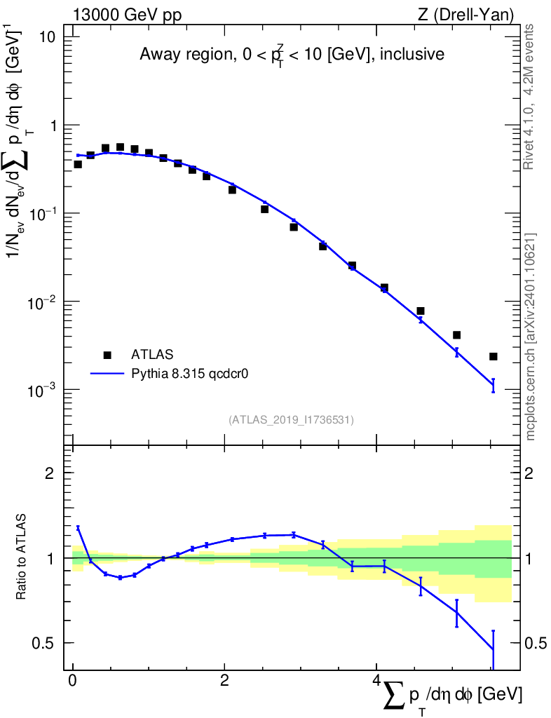 Lines: data, pythia8 8.315 qcdcr0 |