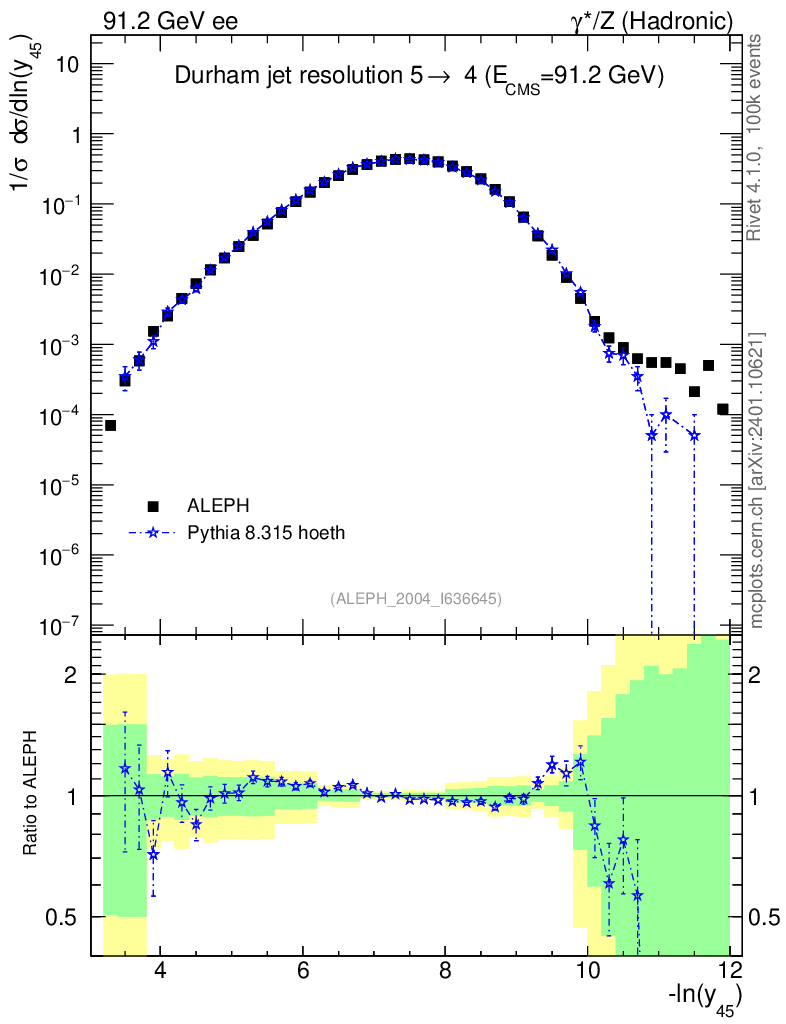 Lines: data, pythia8 8.315 hoeth |