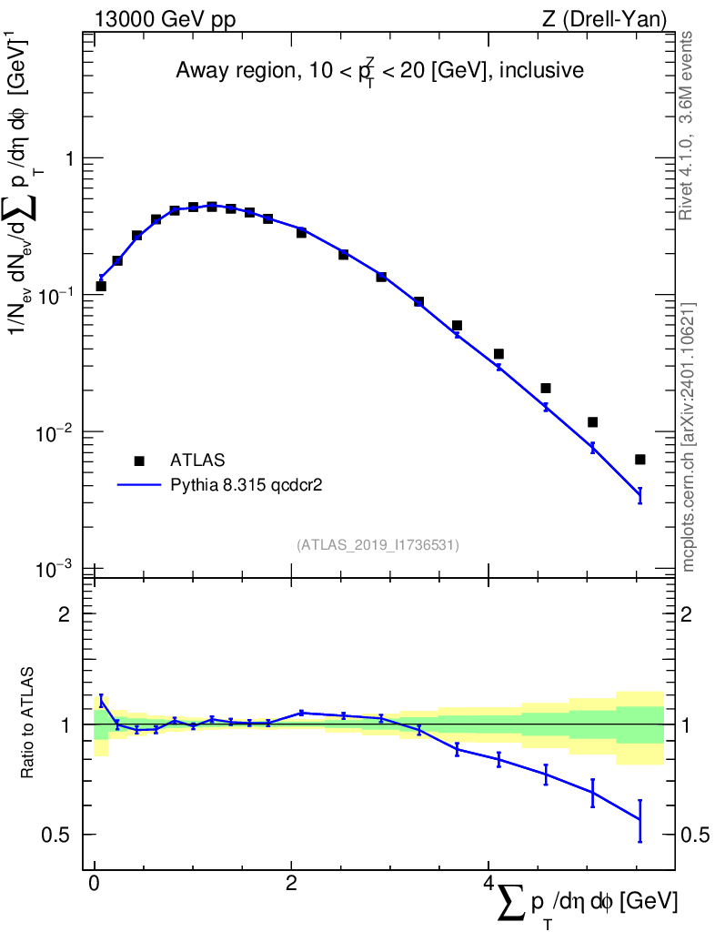 Lines: data, pythia8 8.315 qcdcr2 |