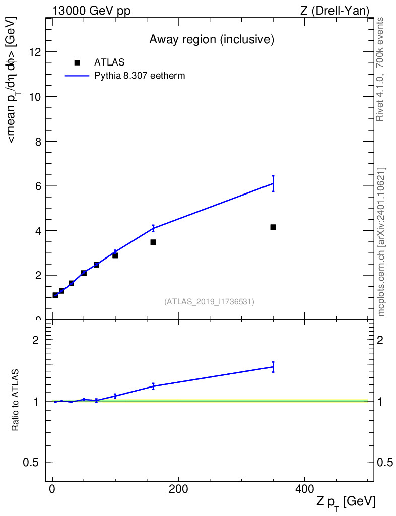Lines: data, pythia8 8.307 eetherm |