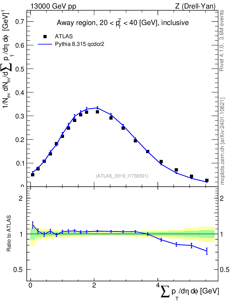 Lines: data, pythia8 8.315 qcdcr2 |