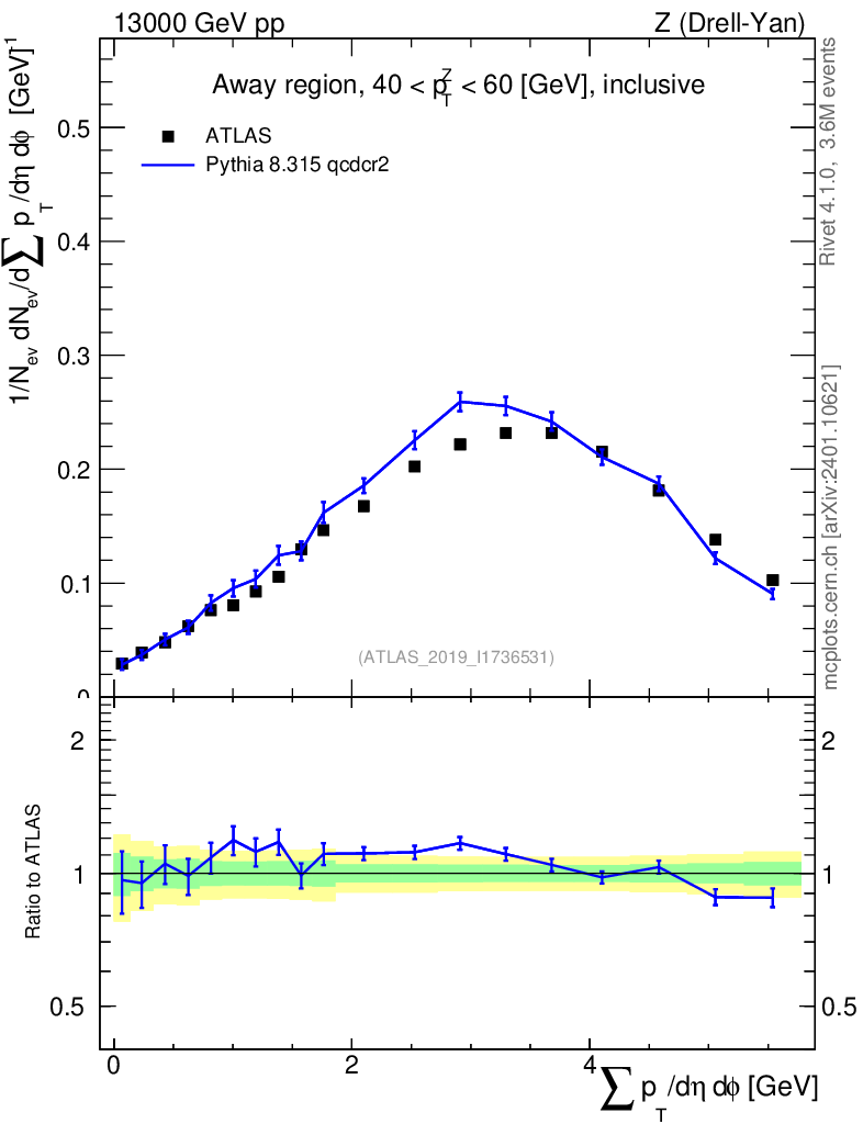 Lines: data, pythia8 8.315 qcdcr2 |
