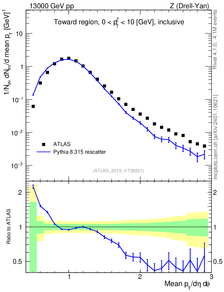 Lines: data, pythia8 8.315 rescatter |