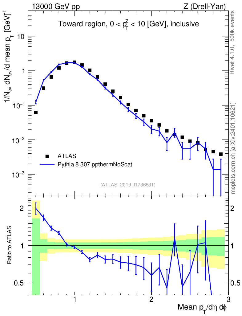 Lines: data, pythia8 8.307 ppthermNoScat |