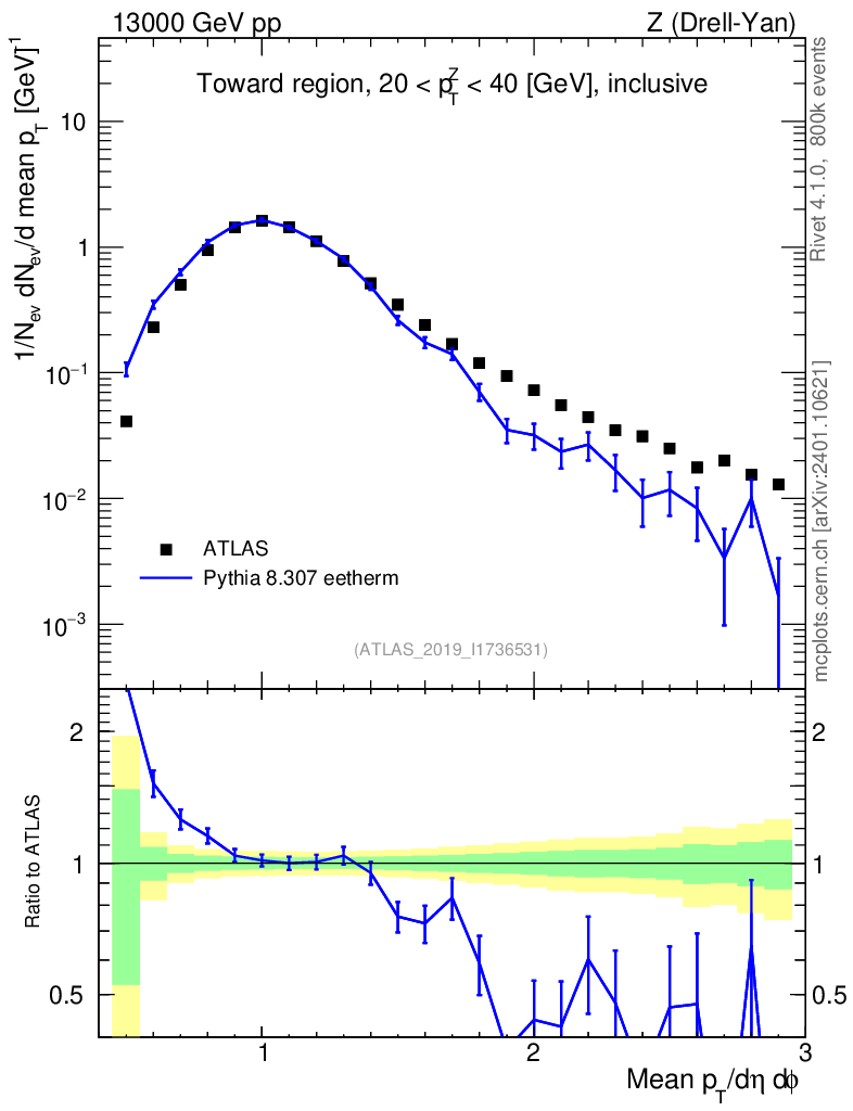 Lines: data, pythia8 8.307 eetherm |